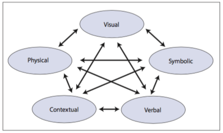 A Matemática é uma ciência de língua universal pois está associada a várias formas de representação de ideias, raciocínios e pensamentos. O raciocínio matemático pode ser mostrado através de vários tipos de representações, indo desde da famosa escrita simbólica (e que tantos associam à Matemática), passando pelas representações verbais, visuais, contextuais, e terminado nas representações físicas.
